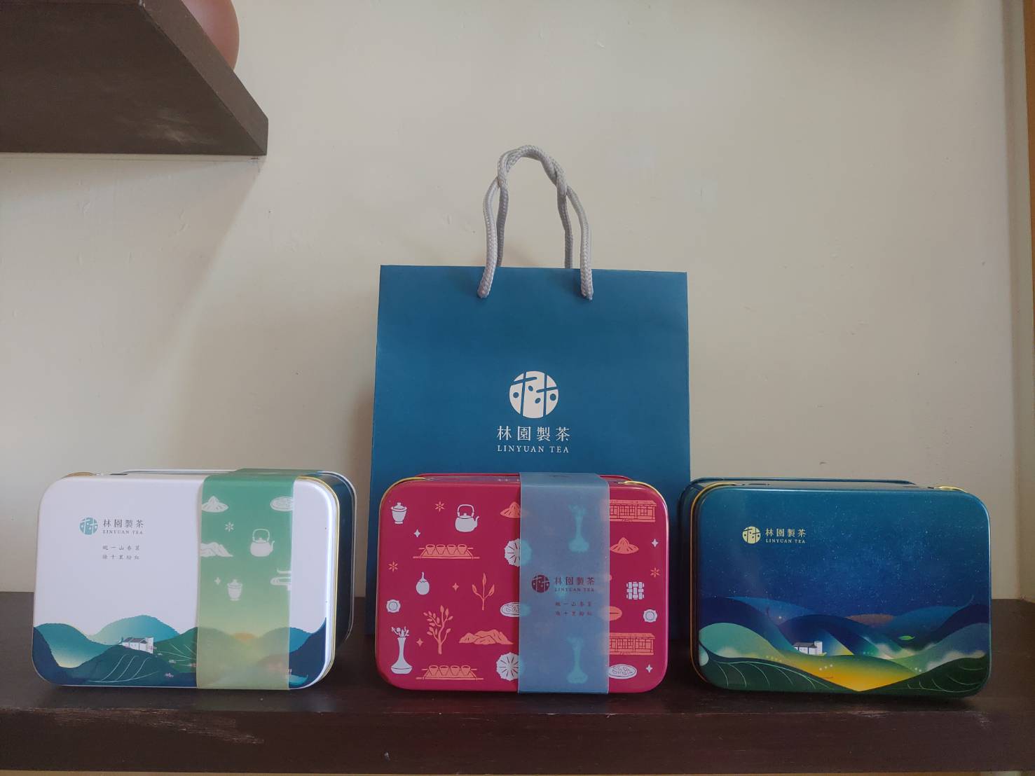 以茶葉產區石棹地方為發想,櫻綻茶曉為春天季節櫻花在茶園間盛開的風光,琉璃茶享為冬天晚間雲霧繚繞時石棹的特殊琉璃光景色,囍市洋洋中為林園製茶舉辦古厝茶會時,茶藝與古厝的意象圖騰,三款禮盒皆採用鐵盒製作,除了送禮精美更可以留下來作為其他用途(擺放小飾品,零錢盒...等等)
